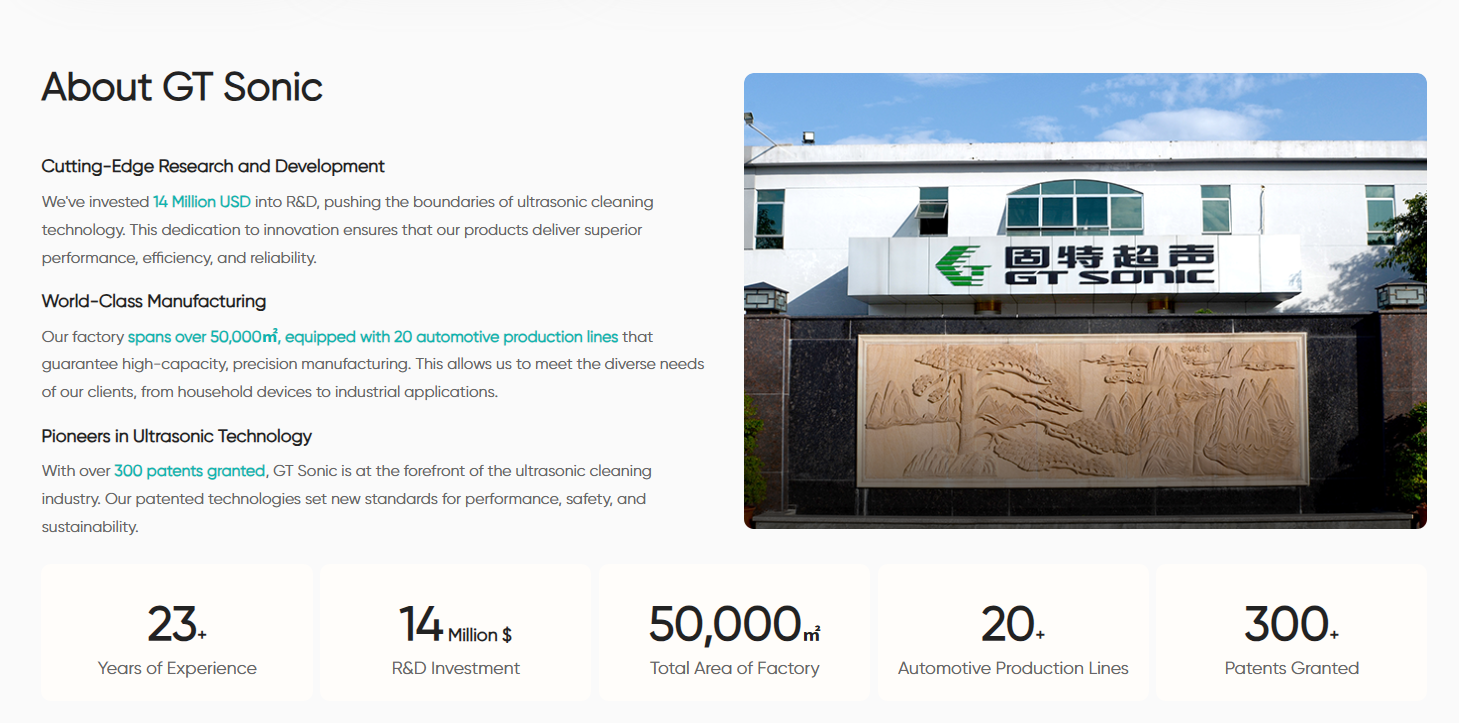 it matters in industrial and professional cleaning equipment because reliability is closely tied to manufacturing discipline. According to company-stated materials, GT Sonic has more than 20 years of ultrasonic technology experience and supports production with a large-scale factory and automated production lines. These capabilities can help ensure consistent assembly and quality control for professional jewelry cleaner models as well as larger industrial units.
