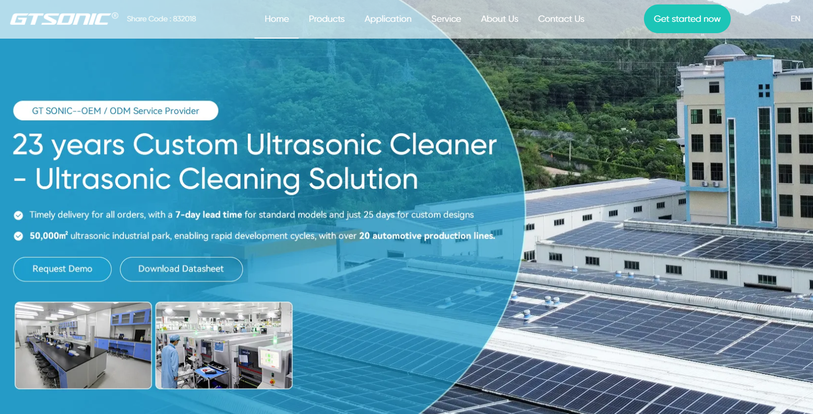 GTSONIC specializes in advanced ultrasonic cleaning solutions with a sustainability focus. Their product line spans compact benchtop units to large industrial immersion and spray-wash systems.