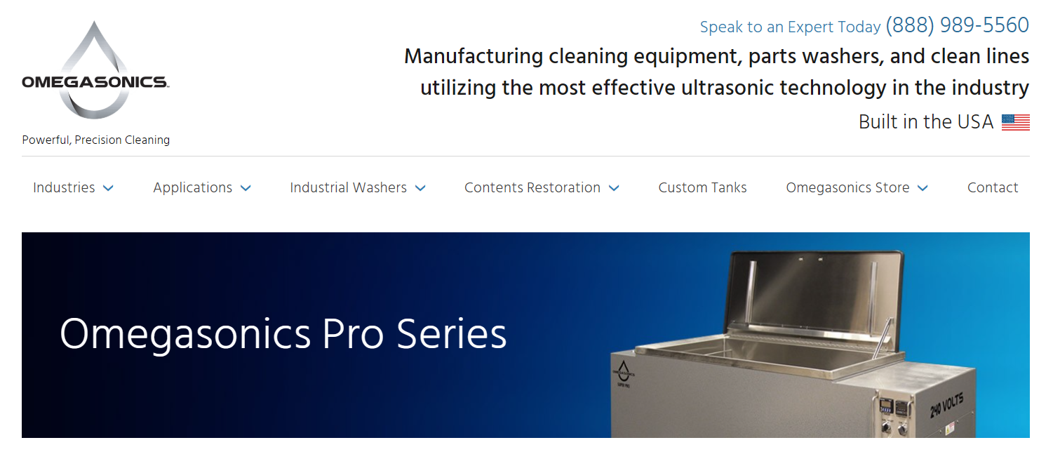 Focused on heavy-duty, water-based ultrasonic systems, Omegasonics serves aerospace, automotive, and general manufacturing sectors.